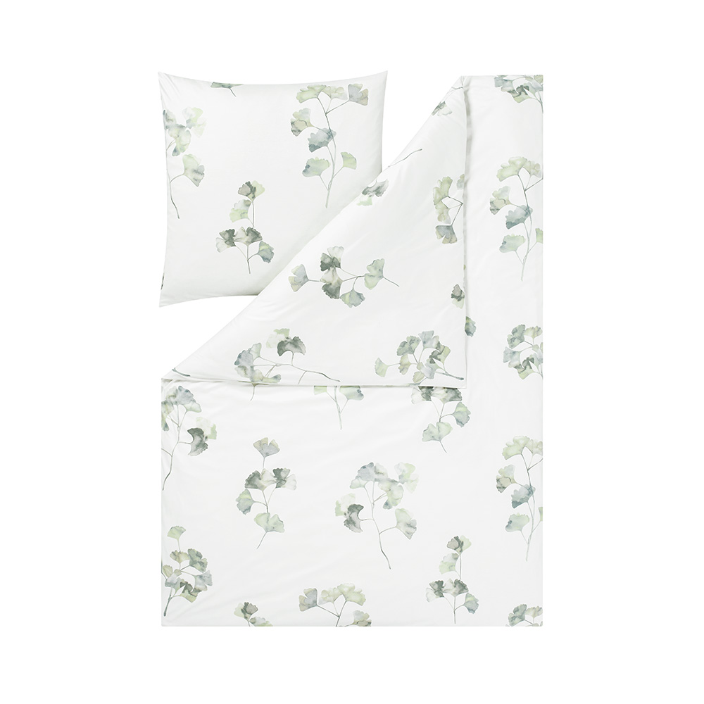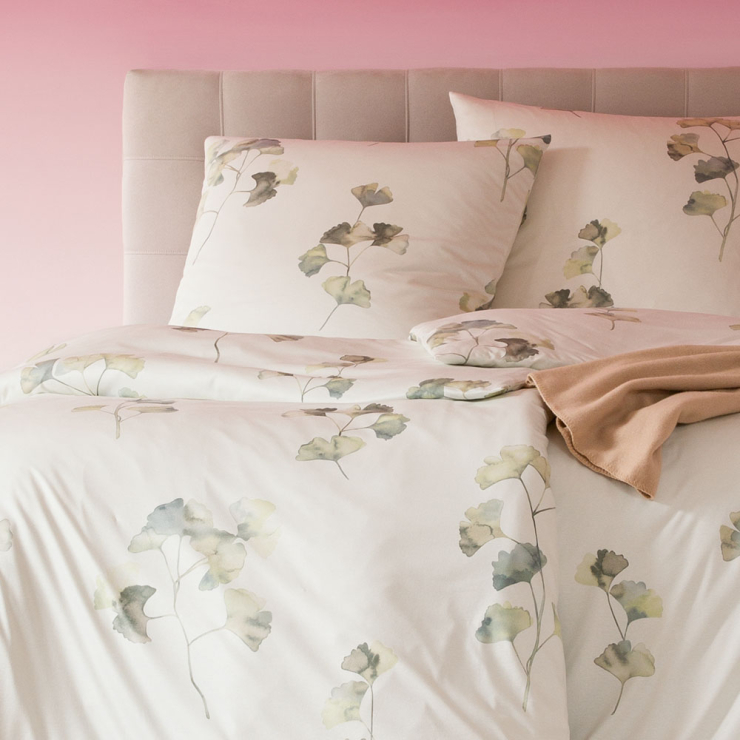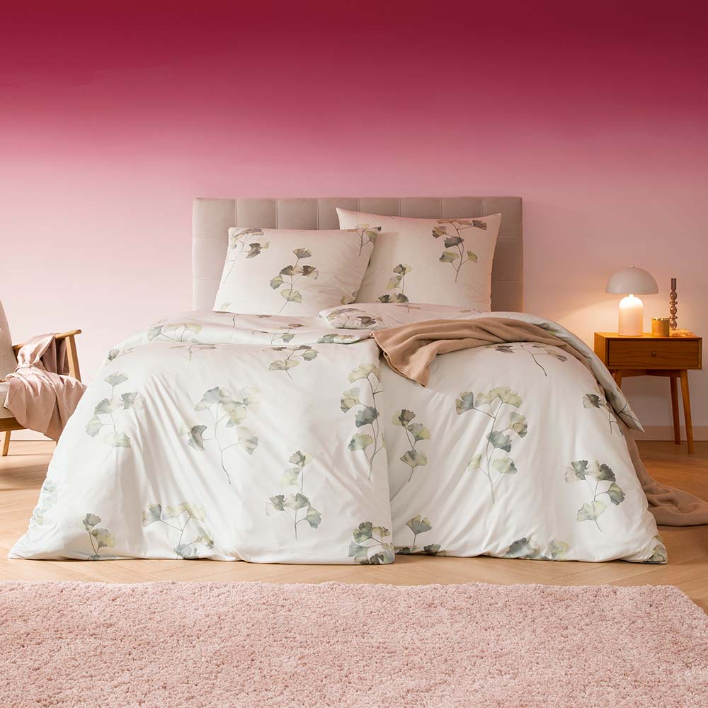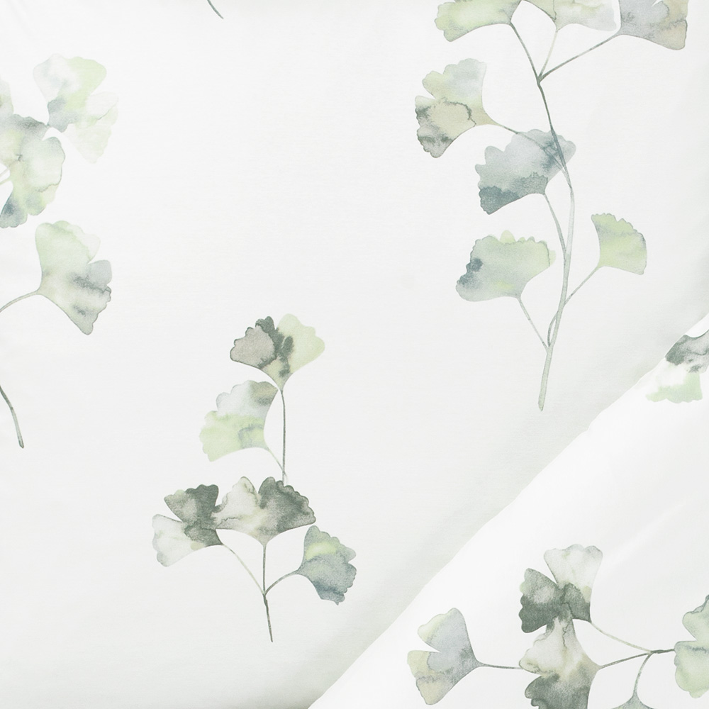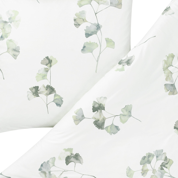 Erlebe Komfort in seiner schönsten Form: mit einer Bettwäsche, die bereits optisch für beste Gelassenheit sorgt. Alma besticht durch ihr edles Ginkgo-Blätterdesign auf hellgrünem Grund. Kombiniere sie mit Möbeln in warmen Holztönen für eine natürliche Ausstrahlung oder setze auf einfarbige Dekorationen, um einen zeitlosen Look zu kreieren. Hauptsache du schmiegst dich am Abend in ihren schmuseweichen Stoff und spürst wie die Anstrengung des Alltags von dir abfällt.