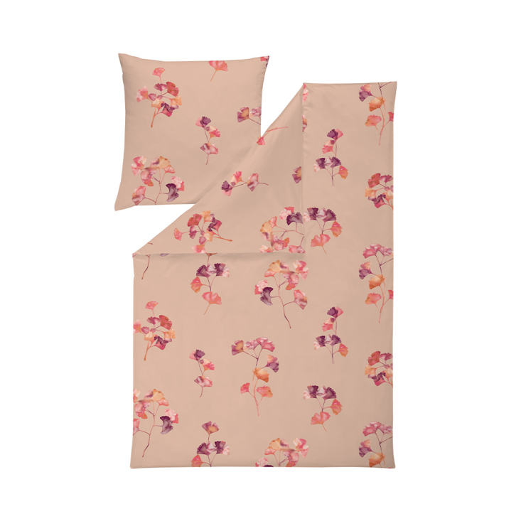 Die Bettwäsche Alma in der Farbe Peach bringt eine sanfte, feminine Leichtigkeit in dein Schlafzimmer. Filigrane Blüten in warmen Rosé-, Apricot- und Beerentönen verteilen sich harmonisch auf dem soften Peach-Hintergrund und schaffen eine ruhige, stilvolle Atmosphäre.