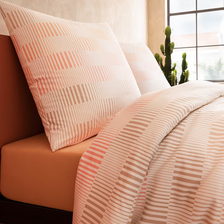 Mit der Bettwäsche Damian in der Farbe Apricot zieht warme, moderne Natürlichkeit in dein Schlafzimmer ein.