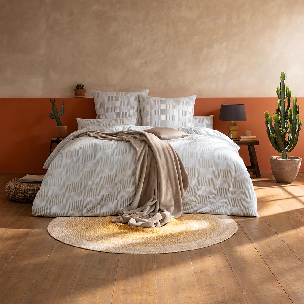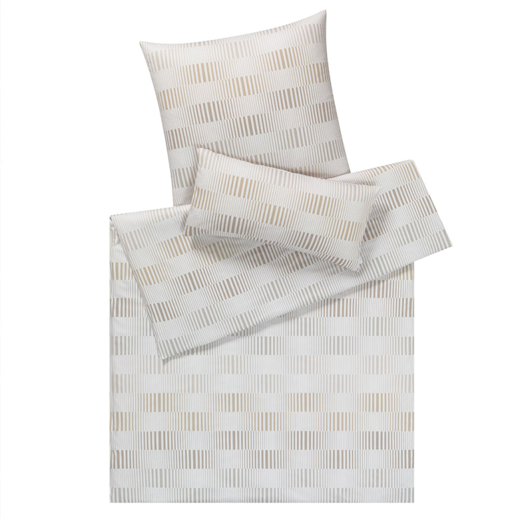 Die Bettwäsche Damian in der Farbe Silber vereint moderne Lässigkeit mit hochwertigem Schlafkomfort. Das klare, grafische Linienmuster in sanften Silber- und Naturtönen wirkt zeitgemäß und bringt eine ruhige, stilvolle Atmosphäre in dein Schlafzimmer – perfekt, wenn du ein minimalistisches, wohnliches Design liebst.