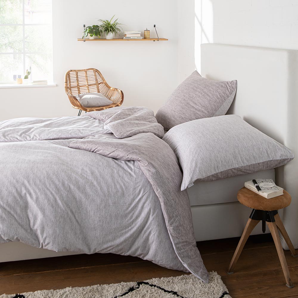 Für die Mako-Interlock-Jersey-Bettwäsche Emil empfehlen wir die Spannbetttuchfarbe 800-kiesel oder 100-weiß.