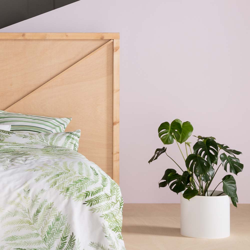 Für die Mako-Satin-Bettwäsche Fern aus der IMPULSE-Kollektion empfehlen wir die Spannbetttuchfarbe 100-weiß oder 565-verde.