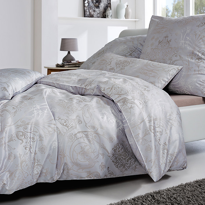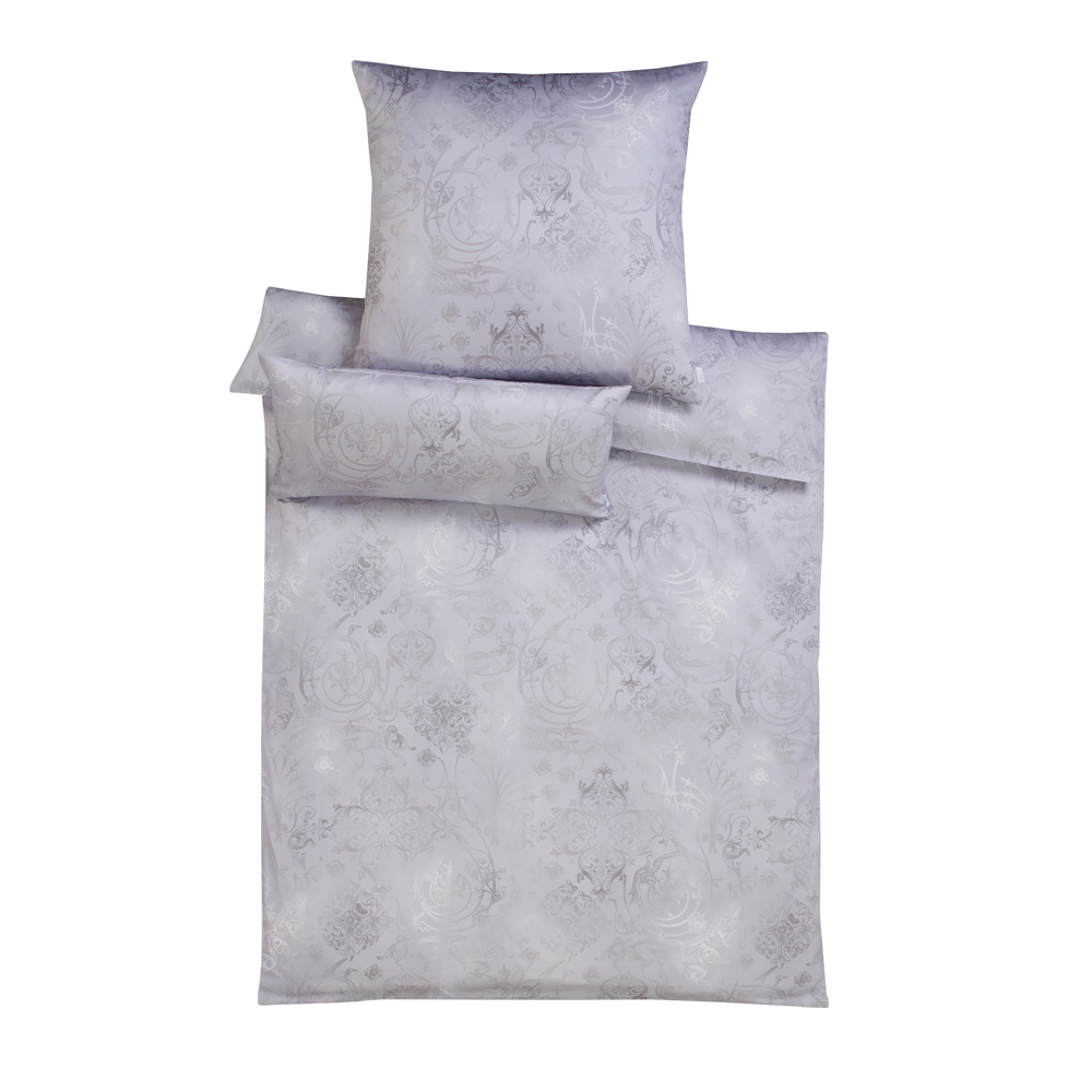 Wie zarte Silberfäden ziehen sich die feinen Ornamente der Gregorio-Bettwäschegarnitur durch das helle Gewebe. Die abwechselnd deutlich erkennbaren bis beinahe unsichtbaren Musterungen scheinen immer wieder erneut in den Stoff eintauchen zu wollen, um sich ganz mit dem kuschelweichen Material zu verbinden. Holen auch Sie sich dieses einzigartige Gefühl mit Gregorio in Ihr Schlafzimmer!