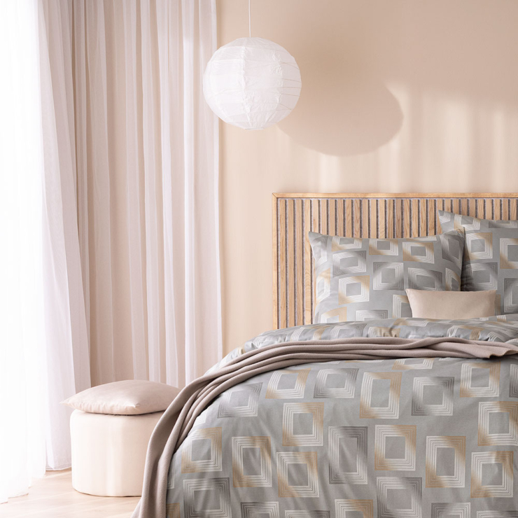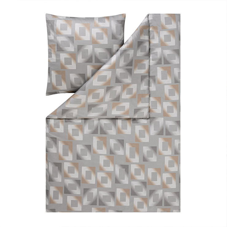 Die Bettwäsche Heiko in der Farbe Grau überzeugt mit einem markanten, geometrischen Design, das moderne Architektur und zeitlose Eleganz vereint.