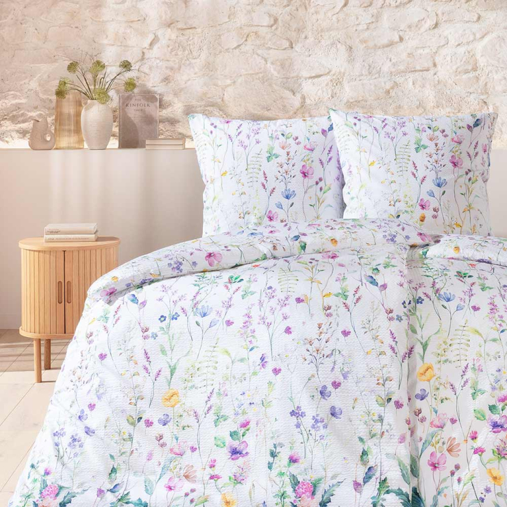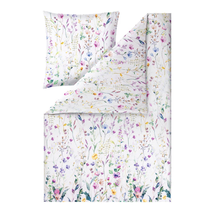 Die Bettwäsche Jane in Multicolor verzaubert mit einem traumhaft zarten Blütendessin, das die Leichtigkeit des Frühlings einfängt.