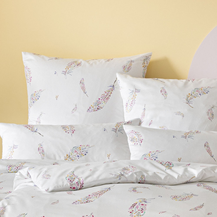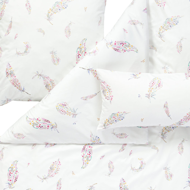 vielen kleinen, farbenfrohen Blumen, Blättern, Ranken und Blüten. So fügt sich die Bettwäsche nicht