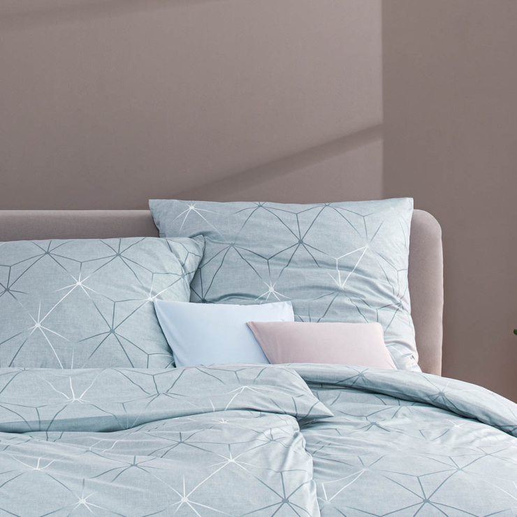 Geometrische Formen schenken deinem Zuhause einen exklusiven Look. Wenn sie dann noch in ein hautsympathisches Wohlfühltextil, wie etwa in einer exklusiven Bettwäsche, verarbeitet werden, ist das Gesamtpaket perfekt. So wie bei den Kopfkissen- und Bettdeckenbezügen der Garnitur Kian. Mit ihrem weichen Basisfarbton Taube und der dezenten Diamantmusterung lässt sie deine Räume kostbar glänzen.