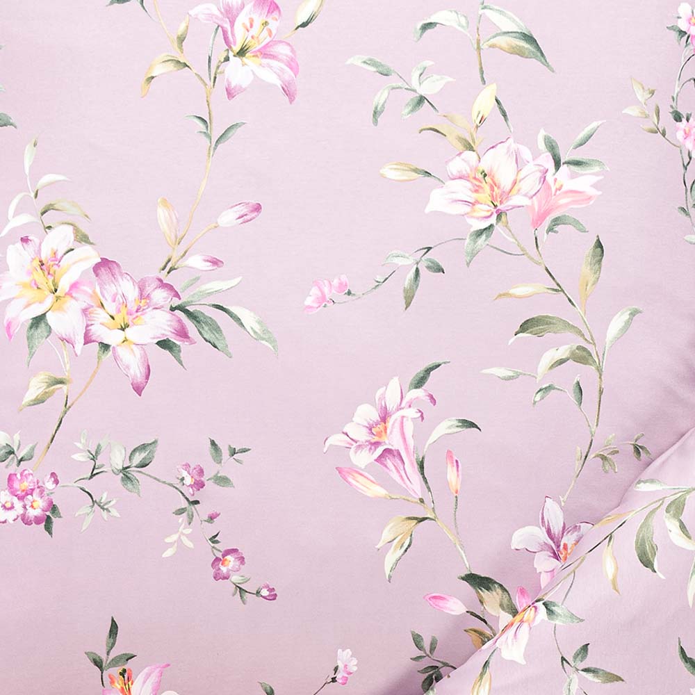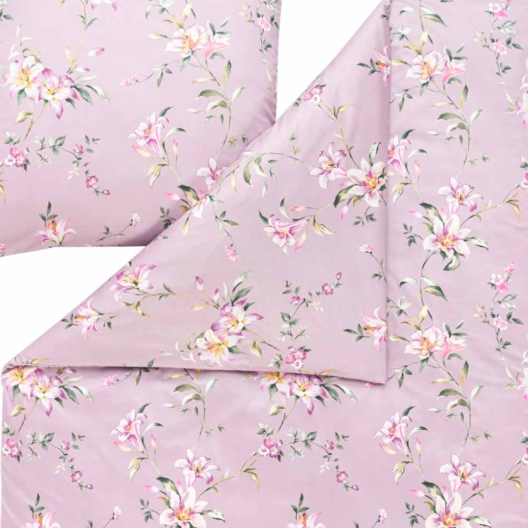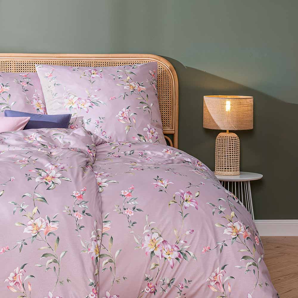 Für die Mako-Interlock-Jersey-Bettwäsche Lillian empfehlen wir die Spannbetttuchfarbe 620-flieder oder 670-aubergine.