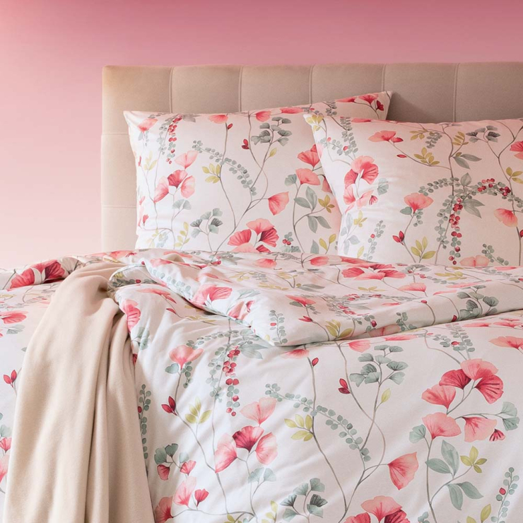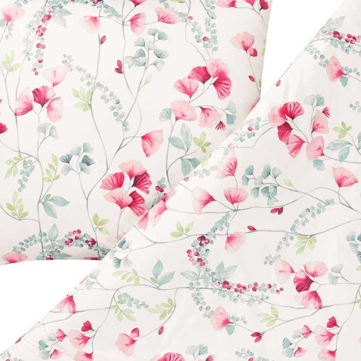 Du möchtest das Gefühl haben, mitten in einem blühenden Garten zu schlafen? Dann könnten die Bezüge der Bettwäschegarnitur Livia genau das Richtige für dich sein. Mit ihrem süßen Rankenmuster aus roten Blüten und zarten grünen Blättern lässt sie den Frühling in deine Schlaf- und Gästezimmer einziehen. Tipp: Ergänze das Set nach dem ersten Aufziehen mit kuscheligen Decken in Pastellfarben und blumigen Accessoires!