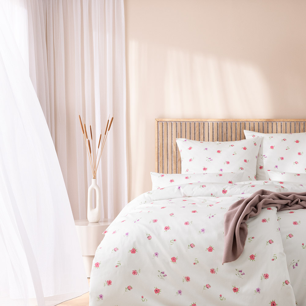Mit der Bettwäsche Marion entscheidest du dich für Qualität zum Wohlfühlen – eine Kombination aus romantischem Design, hautschmeichelndem Komfort und nachhaltiger Herstellung. Für traumhaft schöne Nächte mit einem Lächeln.