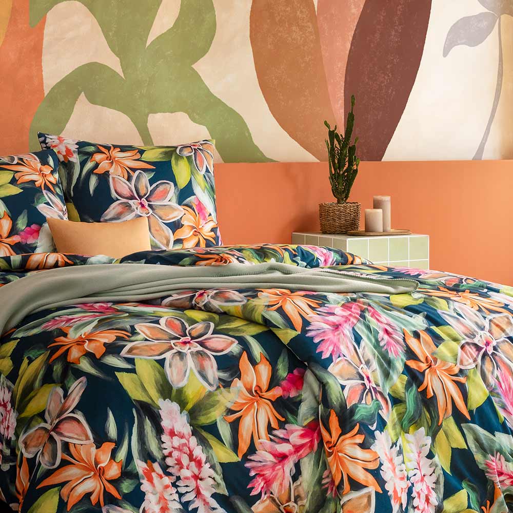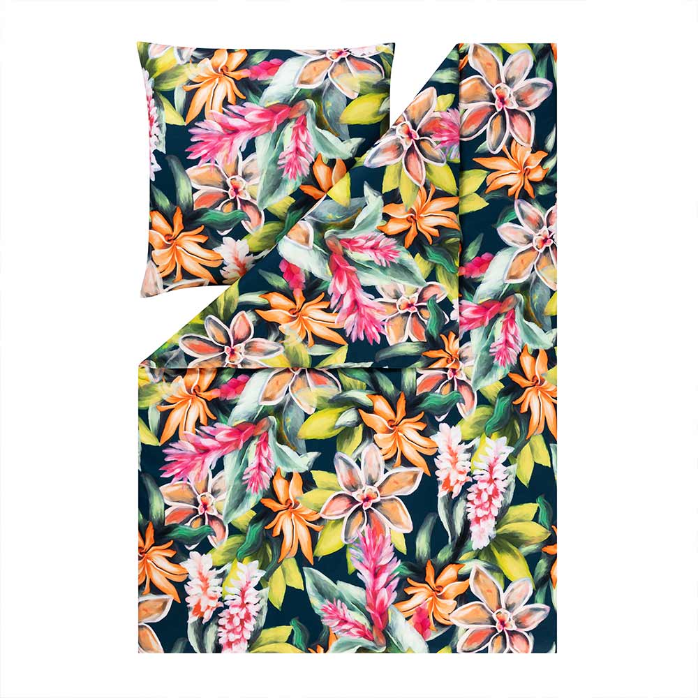 Die Bettwäsche Miriam in der Farbe Multicolor bringt mit ihrem tropischen Blütendesign pure Lebensfreude in dein Schlafzimmer.