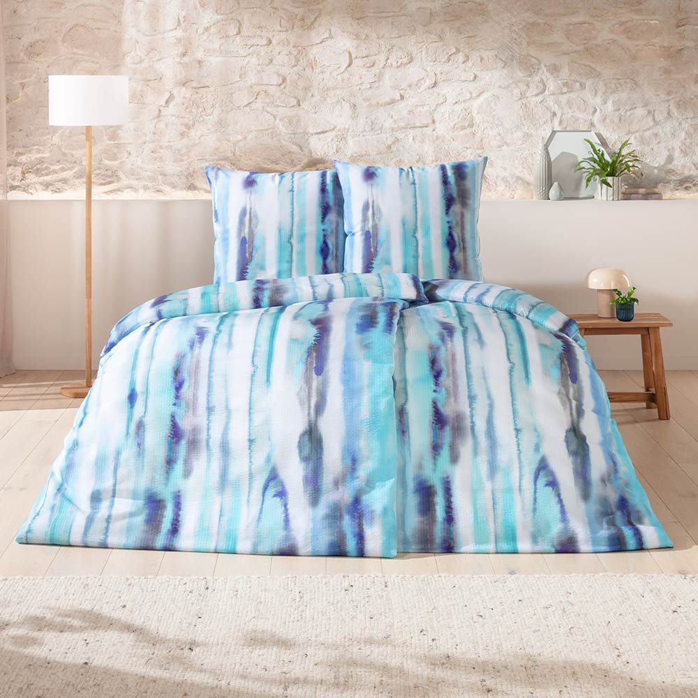 Die Bettwäsche Oscar in Azur vereint moderne Leichtigkeit mit künstlerischer Ausdruckskraft.