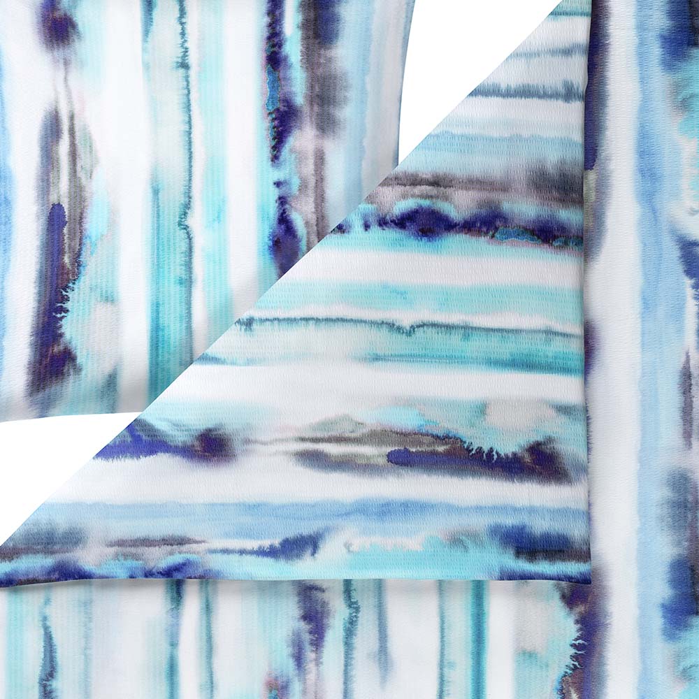 Ihr fließendes Aquarell-Design in sanften Azur-, Blau- und Graunuancen erinnert an Wasserreflexe im Sonnenlicht – beruhigend, frisch und stilvoll zugleich.