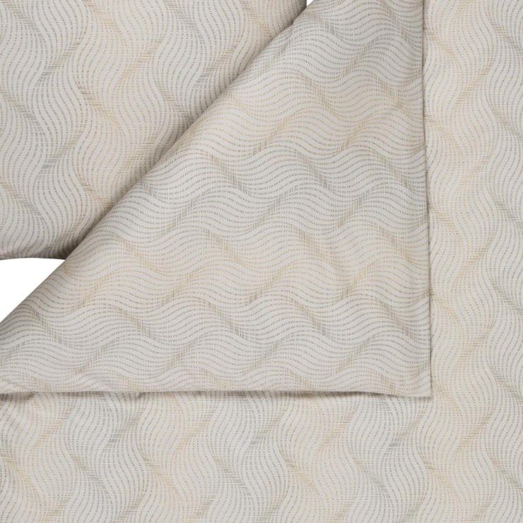Ein cremefarben-goldener Glanz umhüllt deine Kopfkissen und Bettdecken mit den Bezügen der Ruben-Garnitur. Das wellenartige, geometrische Muster erinnert an den glamourösen Artdeco-Stil vergangener Jahrzehnte. Gleichzeitig fügt sich das Set harmonisch in unterschiedliche Wohnambiente ein. Ein echtes Highlight für alle, die für die eigenen vier Wände nach dem gewissen Extra suchen.