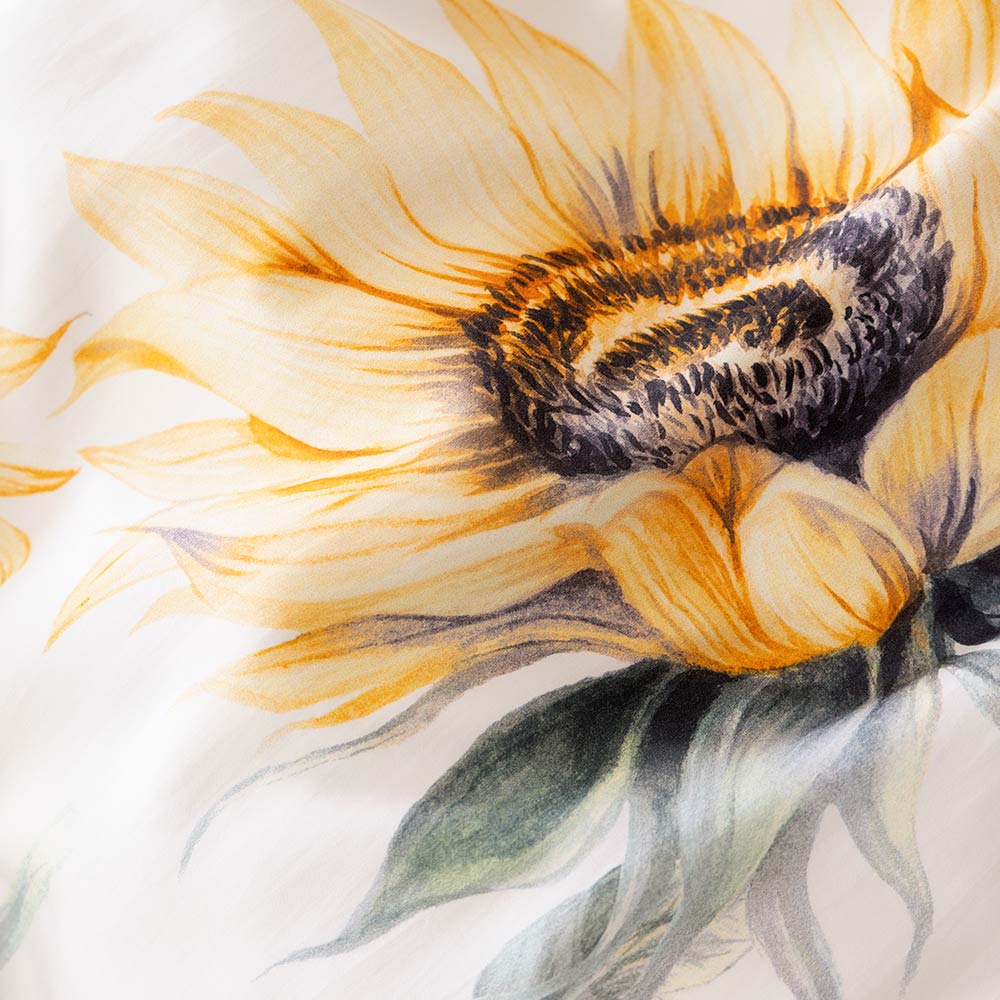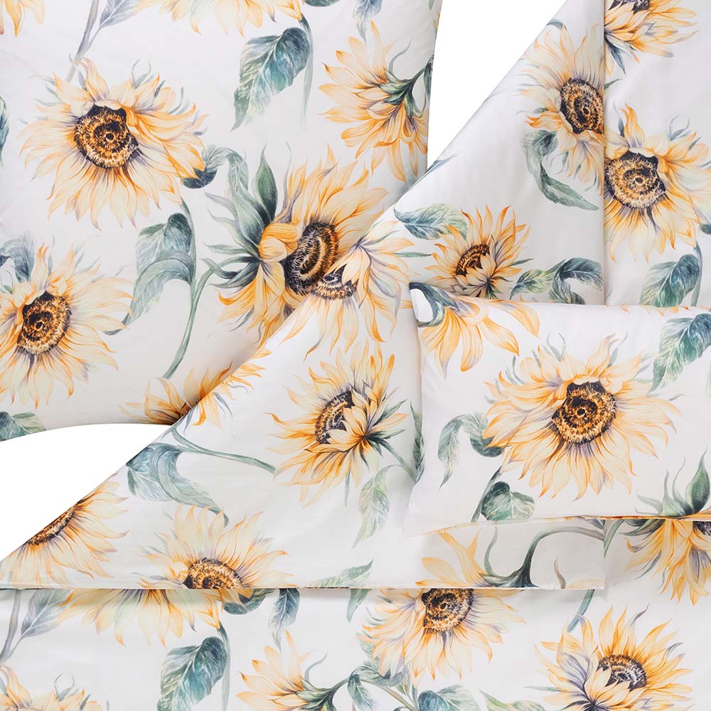 Die Bettwäsche Sandra in der Farbe Gelb bringt das Gefühl eines sonnigen Sommertages direkt in dein Schlafzimmer. Das großflächige Sonnenblumenmotiv in warmen Gelb- und Naturtönen wirkt lebendig und gleichzeitig harmonisch – perfekt, um deinem Raum eine frische, positive Atmosphäre zu verleihen. Die Bettwäsche Sandra in der Farbe Gelb wird schnell zum Highlight deines Zuhauses.