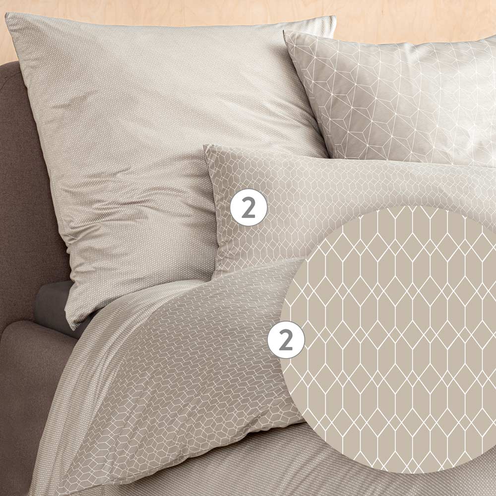 Du bist kein Fan von ausgefallenen Musterungen, Schnörkel und Chichi? Dann dürfte die Bettwäsche Silas genau das Richtige für dich sein. Denn nicht nur ihr Basisfarbton Kiesel ist ein wahrer Gestaltungsallrounder, auch das geometrische Linienmuster ist ein Hingucker, der sich zeitgleich vornehm zurückhält. So hast du mit Silas alle Möglichkeiten für die Schaffung persönlicher Schlafwelten.