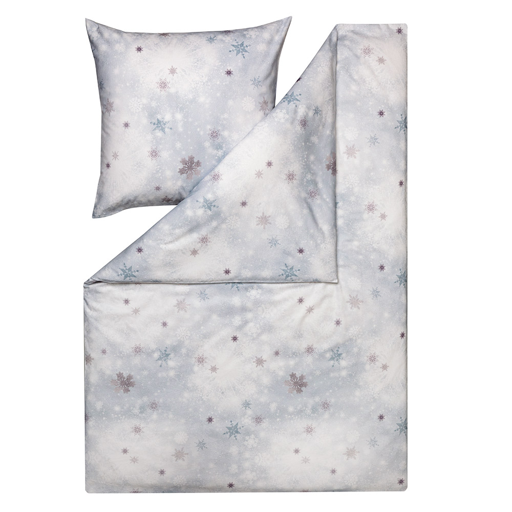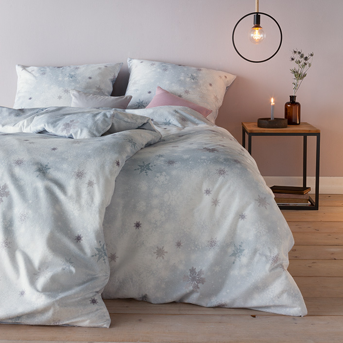 Für die Kuschelflanellbettwäsche Snowflake empfehlen wir die Spannbettuchfarbe 100-weiß.