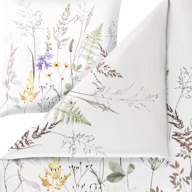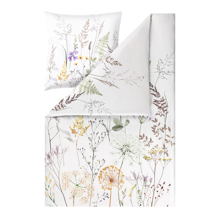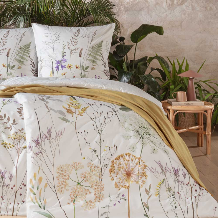 Die Bettwäsche Veronica | multicolor bringt die Schönheit der Natur direkt in dein Schlafzimmer. Das feine Wildblumenmotiv in zarten Pastelltönen – von Honiggelb über Flieder bis hin zu sanftem Grün – erinnert an eine sommerliche Blumenwiese im Morgentau. Der helle Fond lässt das Dessin besonders leicht und harmonisch wirken und verleiht deinem Raum eine ruhige, warme Ausstrahlung.