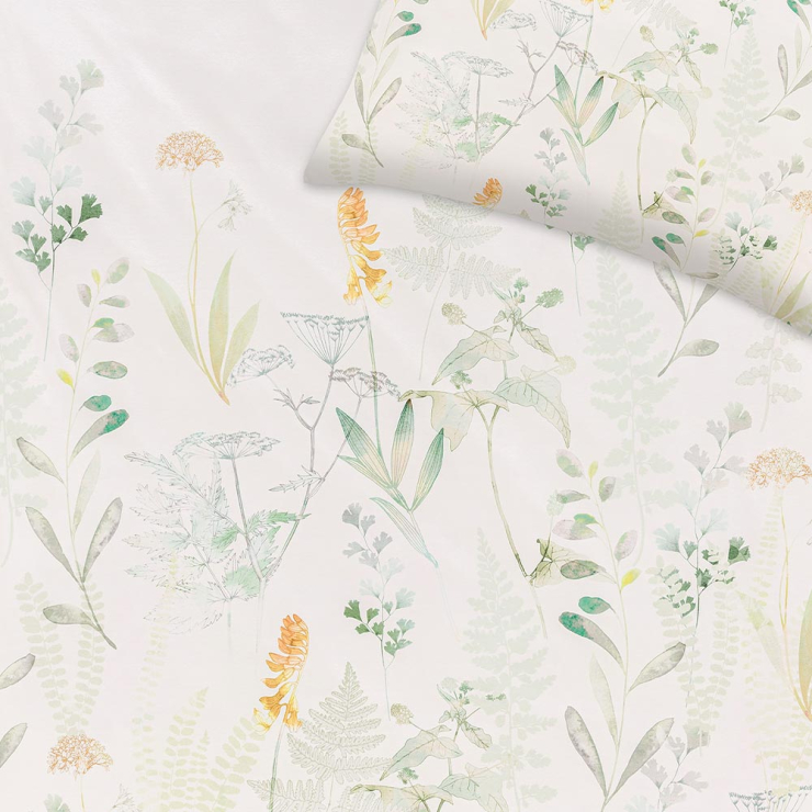 Die Bettwäsche Visby besticht durch ihren hellgrünen Grundfarbton und ein dezentes Blumen- und Blättermotiv. Der florale Print in verschiedenen Grün- und Gelbtönen erstreckt sich über die komplette Garnitur und sorgt so für eine frühlingshafte Optik. Dank der harmonischen Farbkombination erhält dein Schlafzimmer eine besonders softe und angenehm frische Optik, auf die du dich jeden Abend aufs Neue freuen kannst.