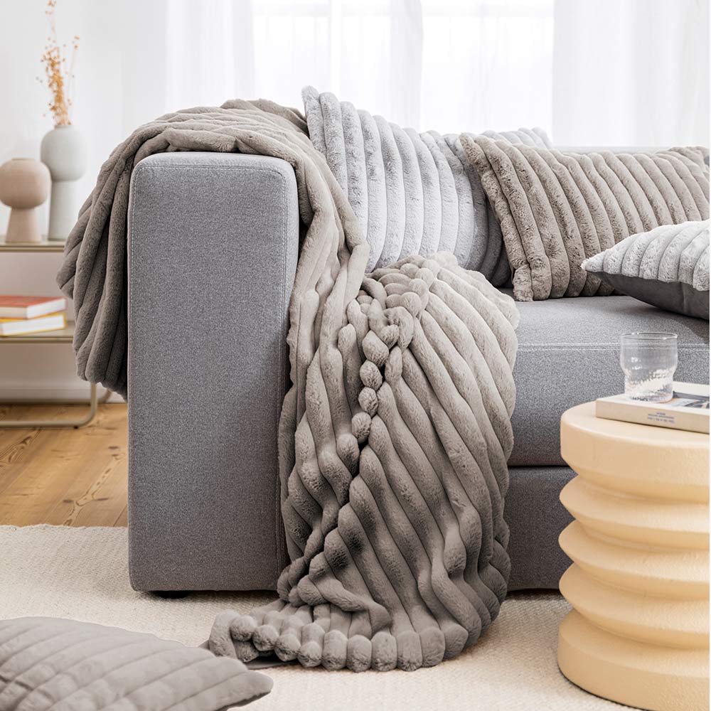 Das Plaid Samano in Taupe bietet eine ausgewogene Kombination aus Komfort, Funktionalität und zeitloser Optik für den täglichen Gebrauch.
